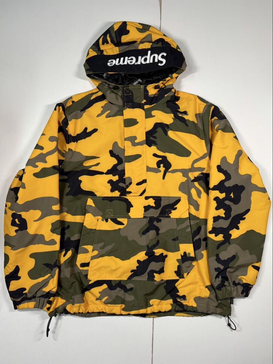 > 【XL】Supreme Hooded Logo Half Zip Pullover Yellow Como シュプリーム フーディ ロゴ ハーフジップ プルオーバー イエロー カモ T1414