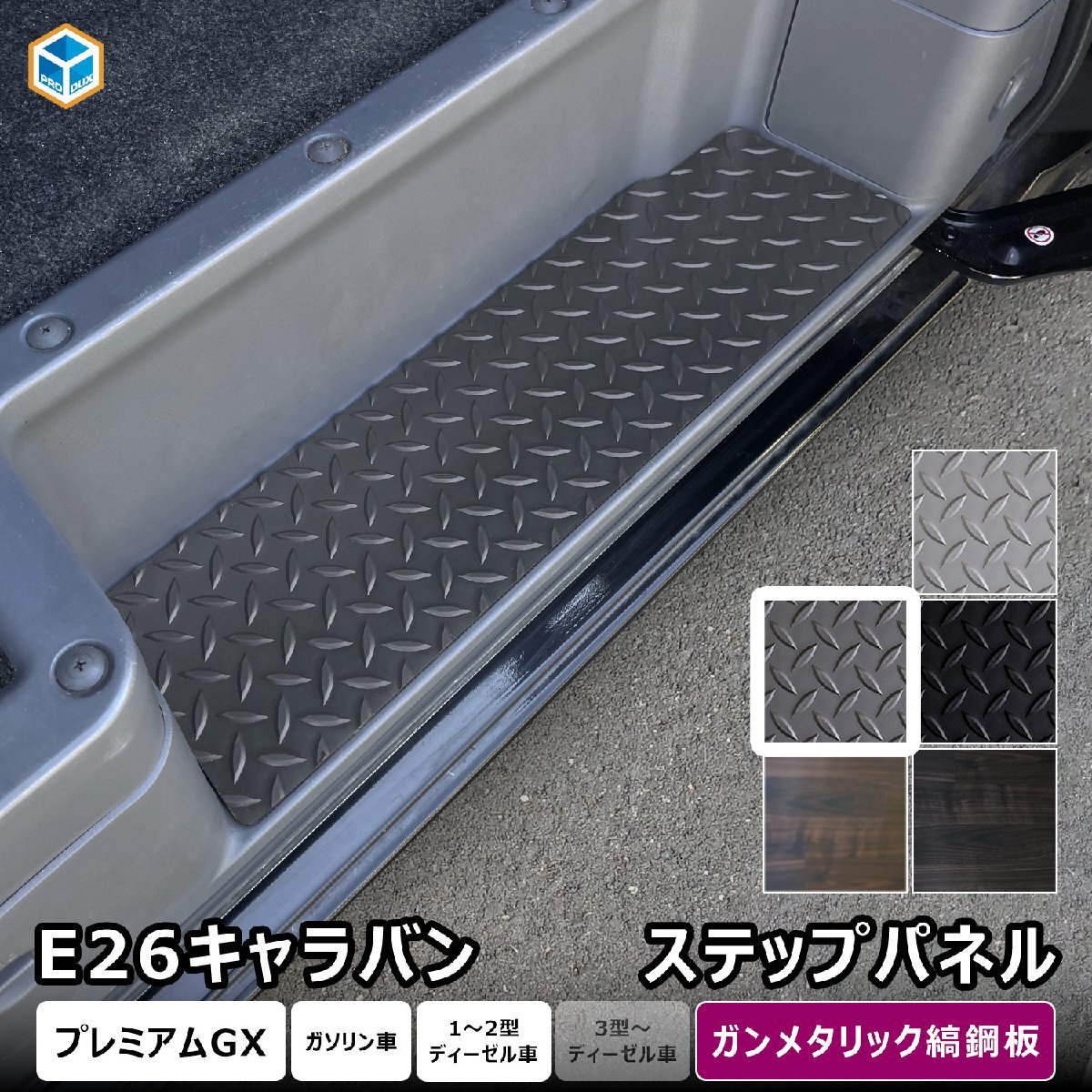 E26 キャラバン プレミアムGX ステップパネル 【ガソリン車/1・2型ディーゼル車 × ガンメタリック縞鋼板】| NV350 保護 スカッフプレート拍卖