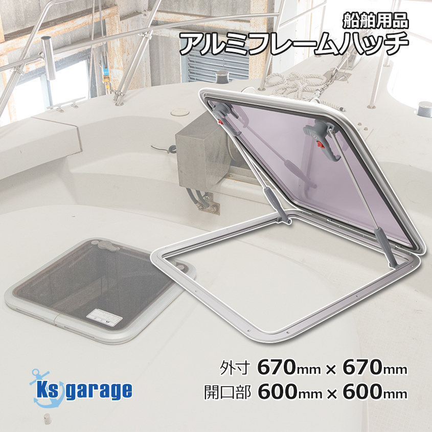 - 船舶 ハッチ アルミフレームハッチ 外寸 670mm×670mm 取付け開口部 600mm×600mm 漁船 ボート エスケープハッチ キャンピングカー 窓 換気
