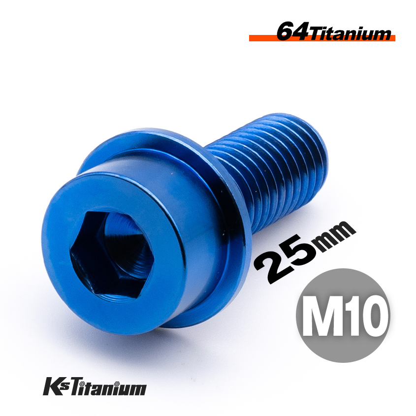 > チタンボルト M10×25 brembo用 P1.50 ブルー 1本売り 64チタン キャップボルト スレッド FULL(全ネジ) バイク レストア パーツ