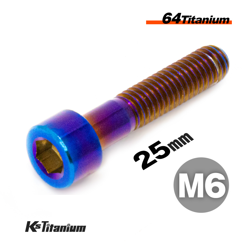 - チタンボルト M6×25 P1.0 焼き色 1本売り 64チタン キャップボルト スレッド 20mm バイク レストア パーツ
