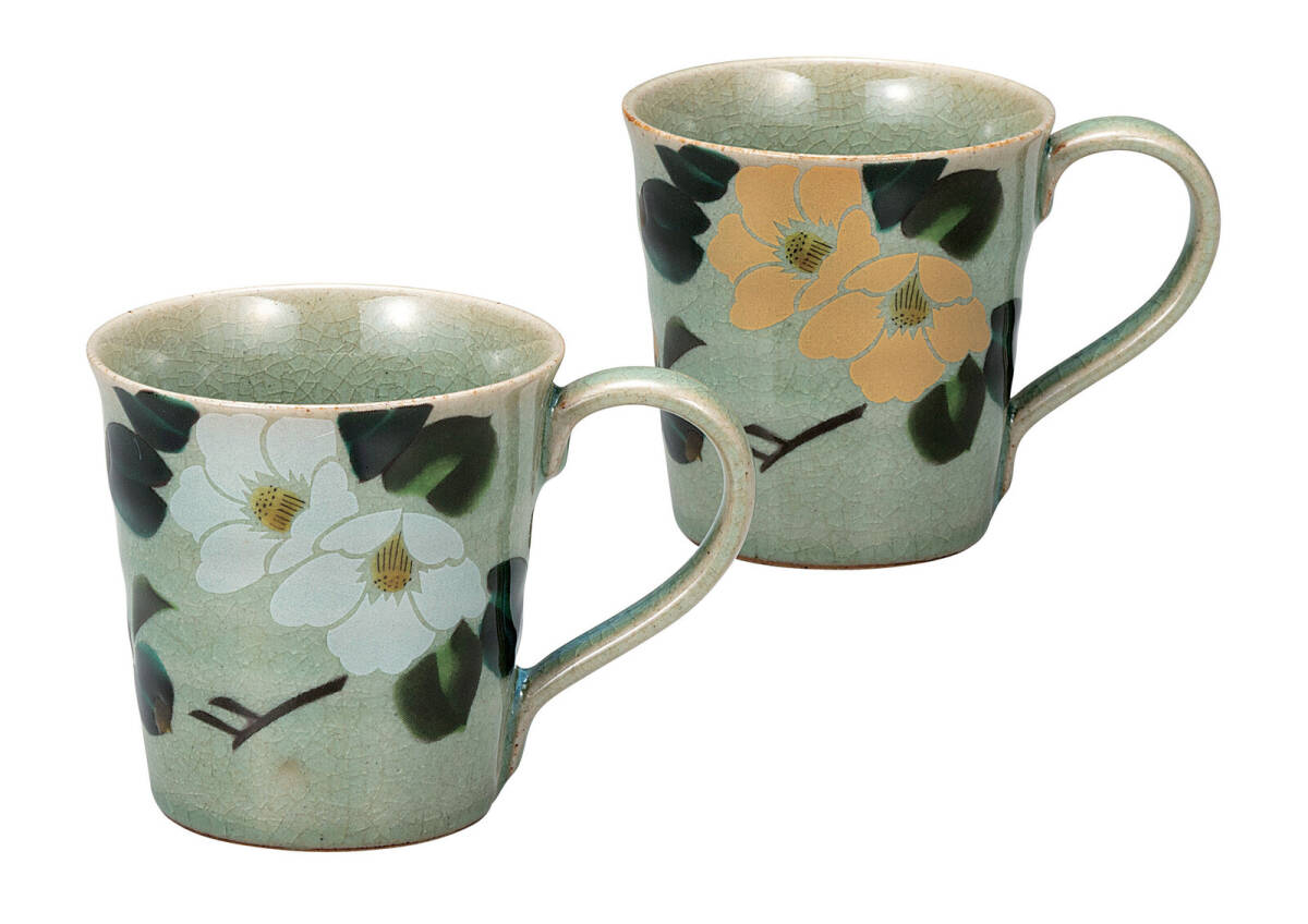 - 九谷焼! ☆金銀椿ペアマグカップ☆ K9-1021 新品 茶器 コーヒー 紅茶 ミルク ラテ エスプレッソ カプチーノ ギフト