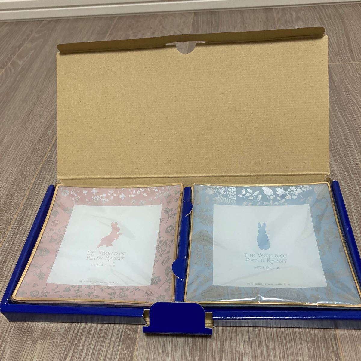 - 新品未使用ピーターラビット小皿2枚セット 三菱UFJ信託銀行 エクセレント倶楽部 非売品 絵葉書2枚付
