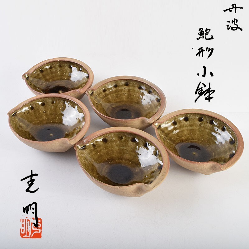 - 和食器 丹波焼 市野克明作 鮑形小鉢 五客 共箱 VMGJ