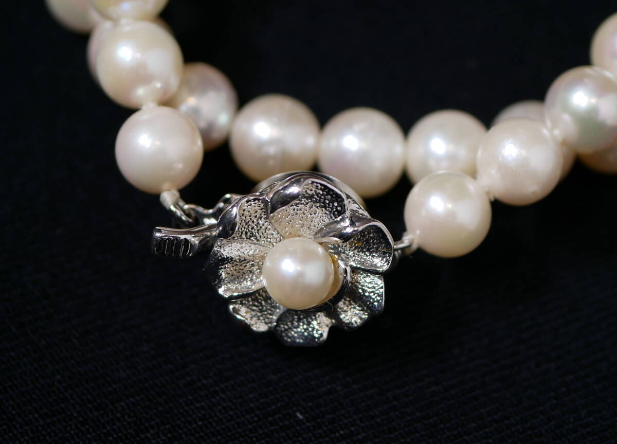 - ▲(R708-H258) 本真珠 パール ネックレス 7.00mm~7.50mm ホワイト系 留め具 SILVER刻印 アクセサリー 冠婚葬祭 小物 鑑別書/保存箱付き