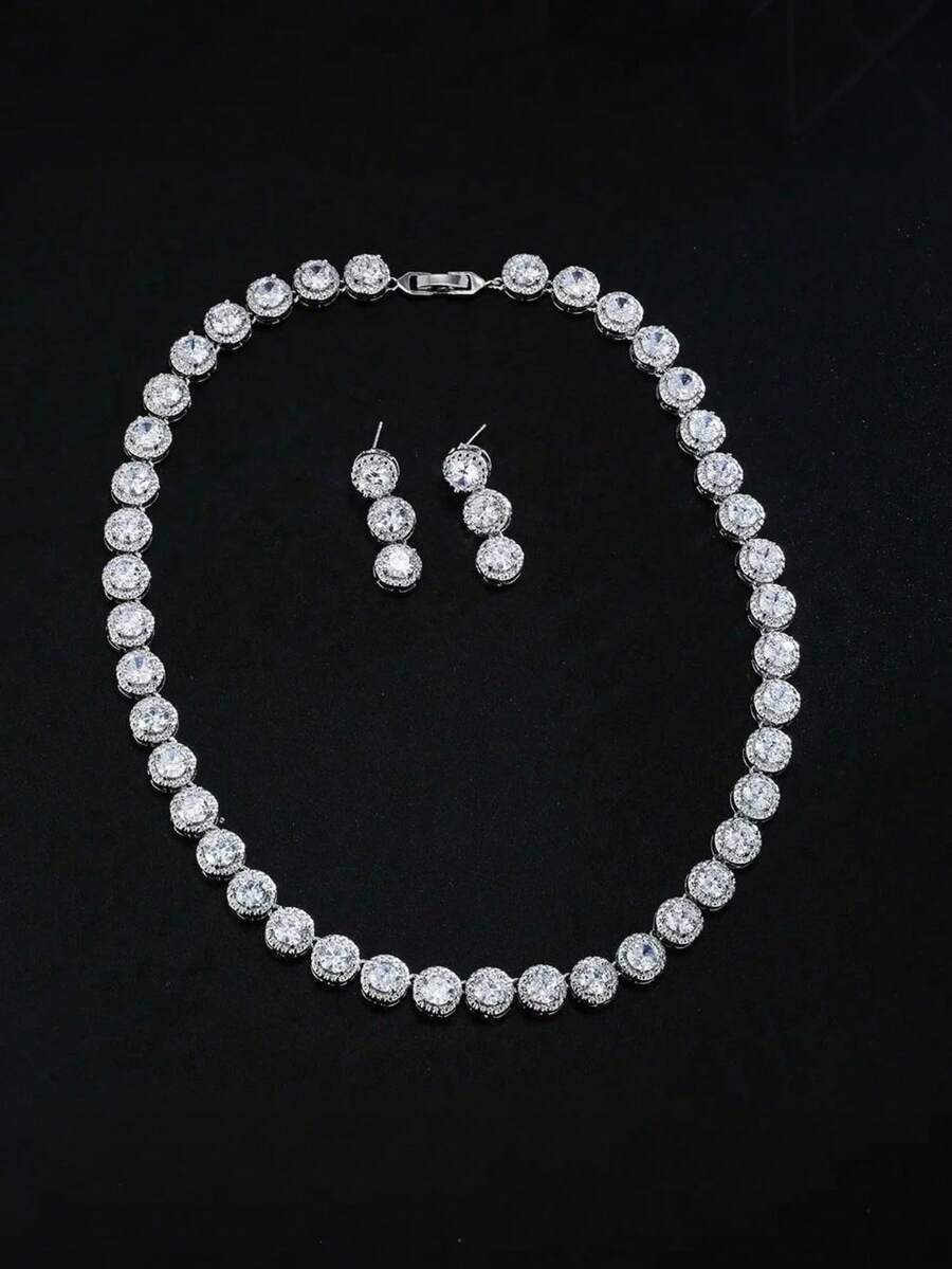 > ジュエリー レディース セット 1セット ラグジュアリー ウェディング用ブライダルジュエリーセット、ネックレスとピアスが含まれる、