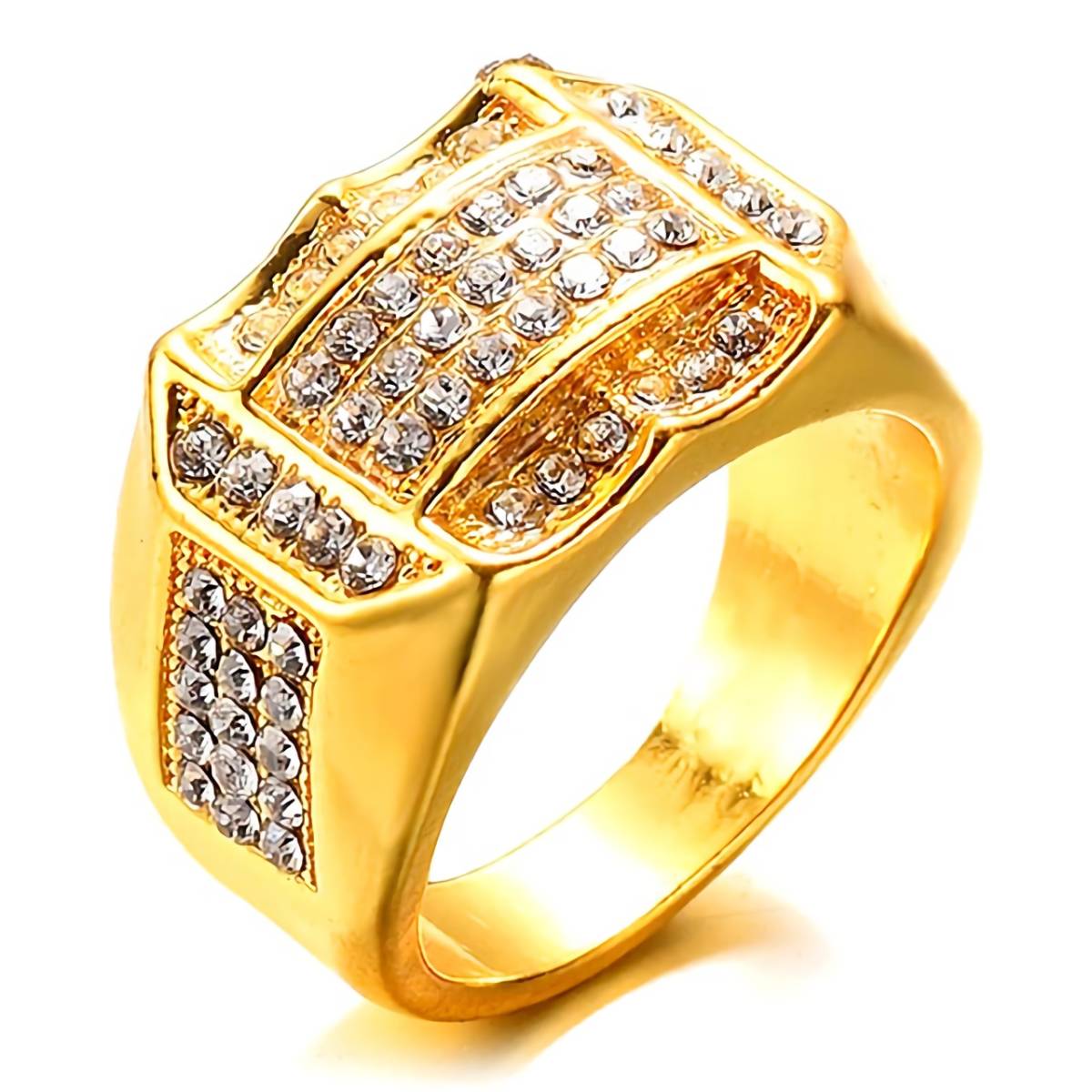 - 新品★送料無料★虹色輝き 多石ダイヤモンド 金彩ヒップホップ K18GFゴールドリング 誕生日プレゼント旅行連休秋祭冬ギフト 国内発送