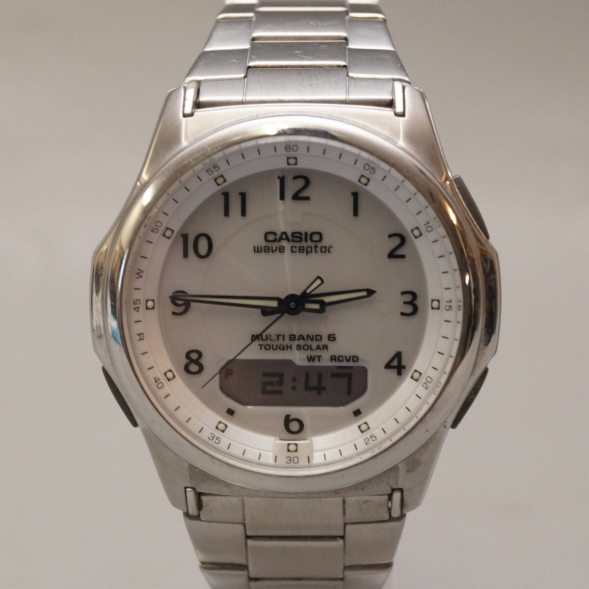 - yd51-CASIO カシオ 腕時計 WAVECEPTER 5161 WVA-M630 白文字盤 箱付 電波 メンズ