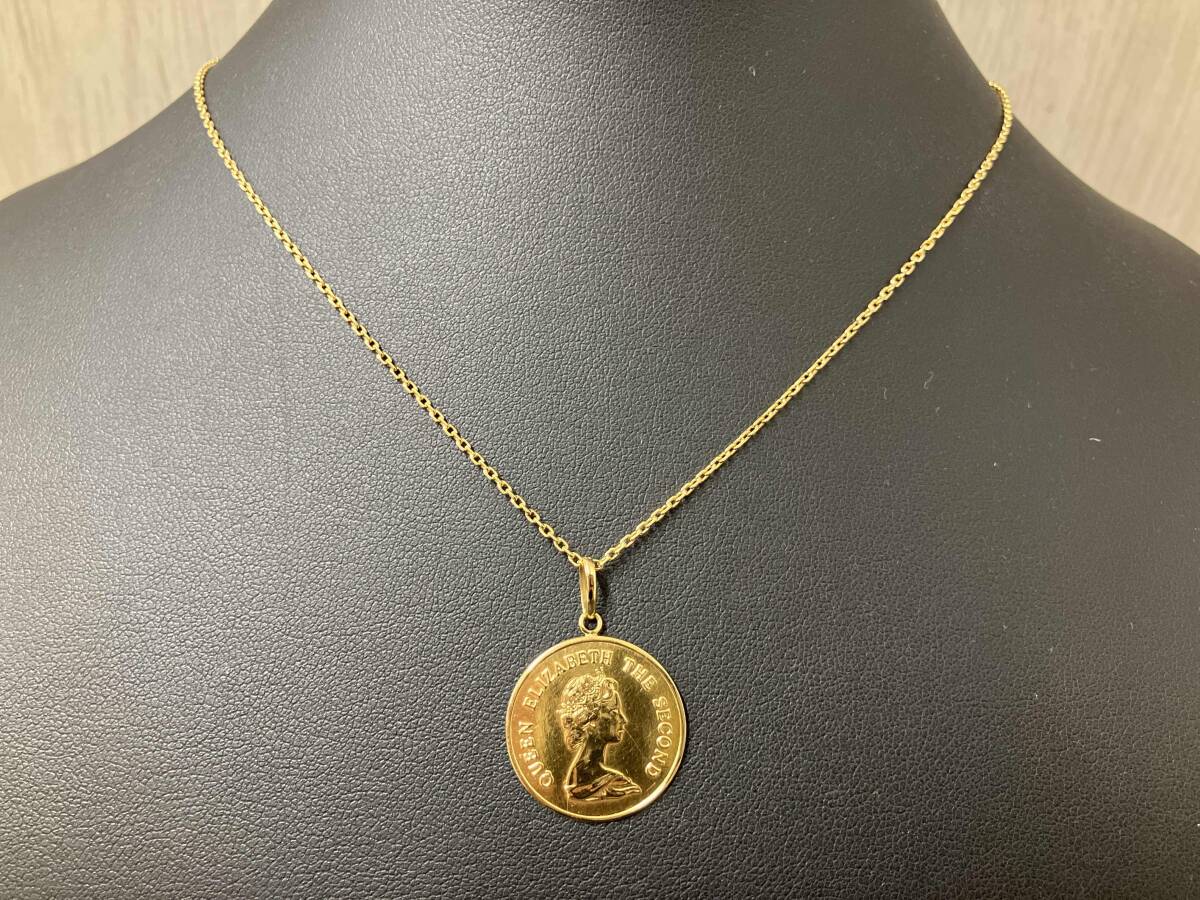 > 【クリーニング済】K18 総重量約6.0g 約41cm コイントップ デザイン ゴールド ネックレス QUEEN ELIZABETH THE SECOND