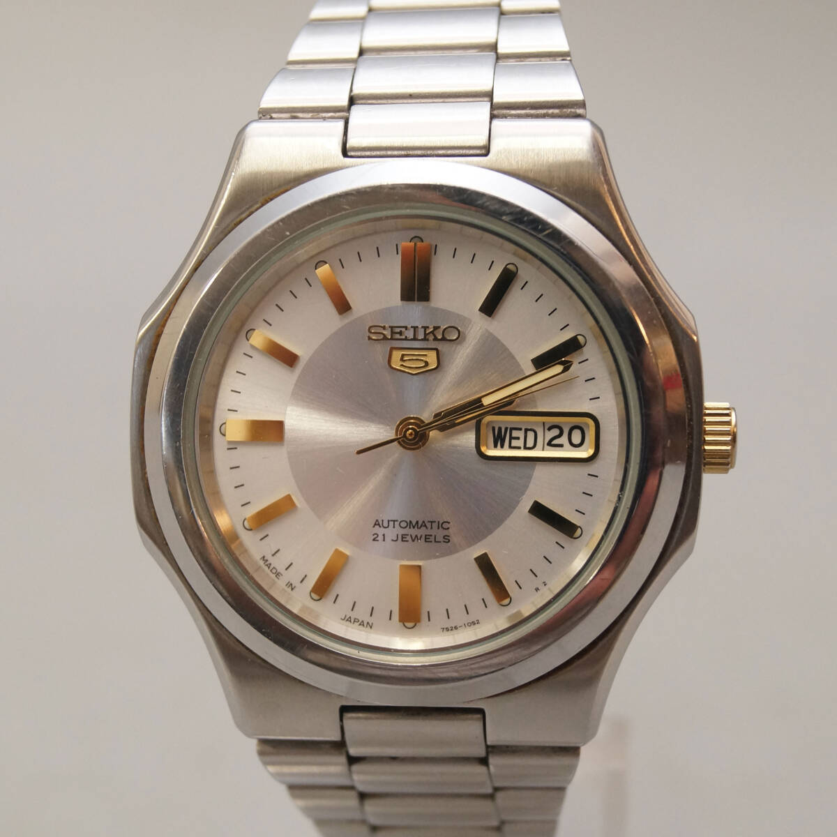 > yd48-SEIKO5 セイコー5 腕時計 7S26-03R0 自動巻き 21JEWELS 3針 カレンダー ゴールド シルバー AUTOMATIC 金銀 メンズ