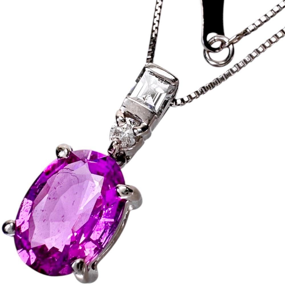 - ピンクサファイア 1.373ct ダイヤモンド 0.13ct ネックレス Pt900プラチナ/Pt850プラチナ 3.3g 45cm レディース