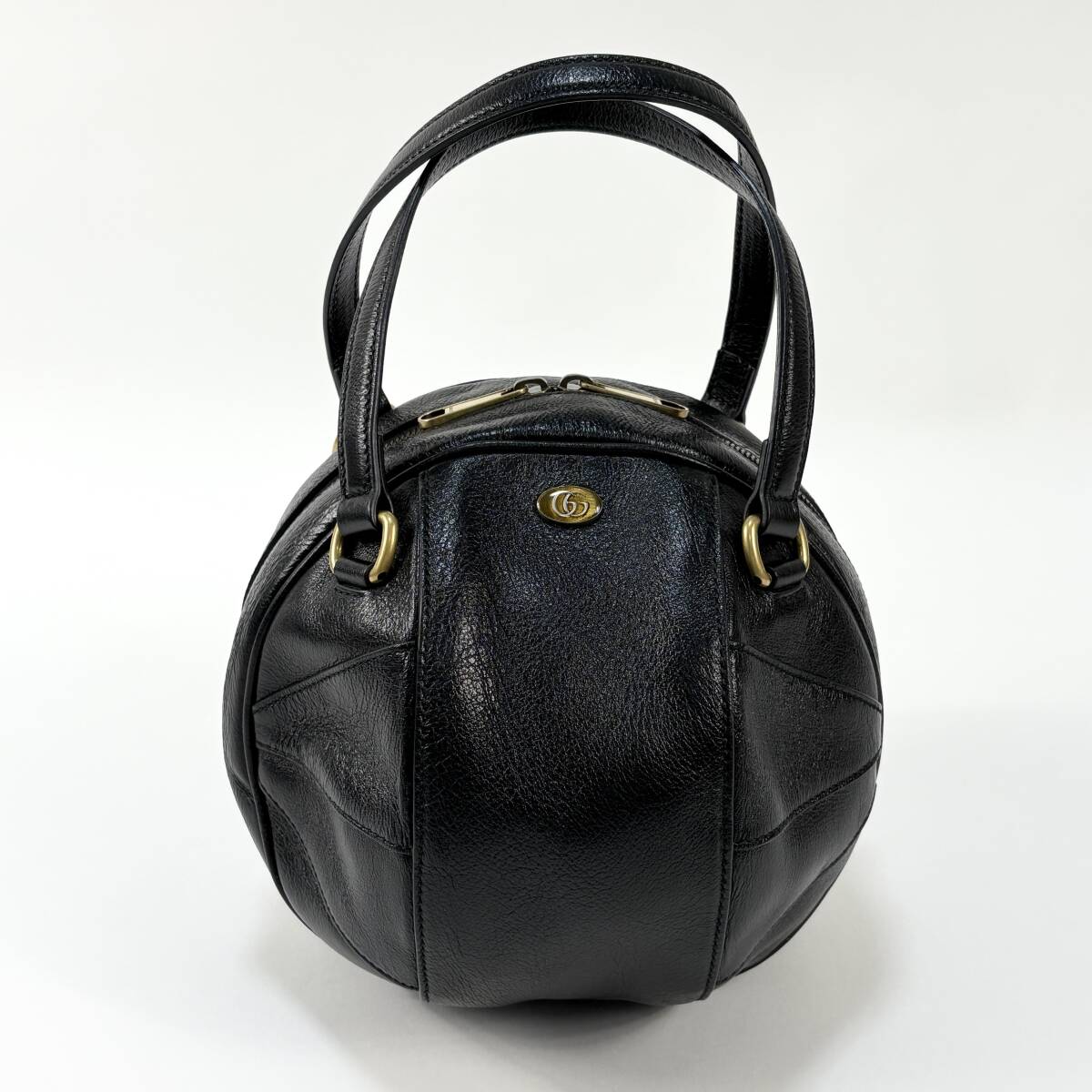 - 美品 GUCCI / グッチ 18AW バスケットボール シェイプ レザーハンドバッグ 536110 467891 ブラック 丸型 トートバッグ カバン SSM5906