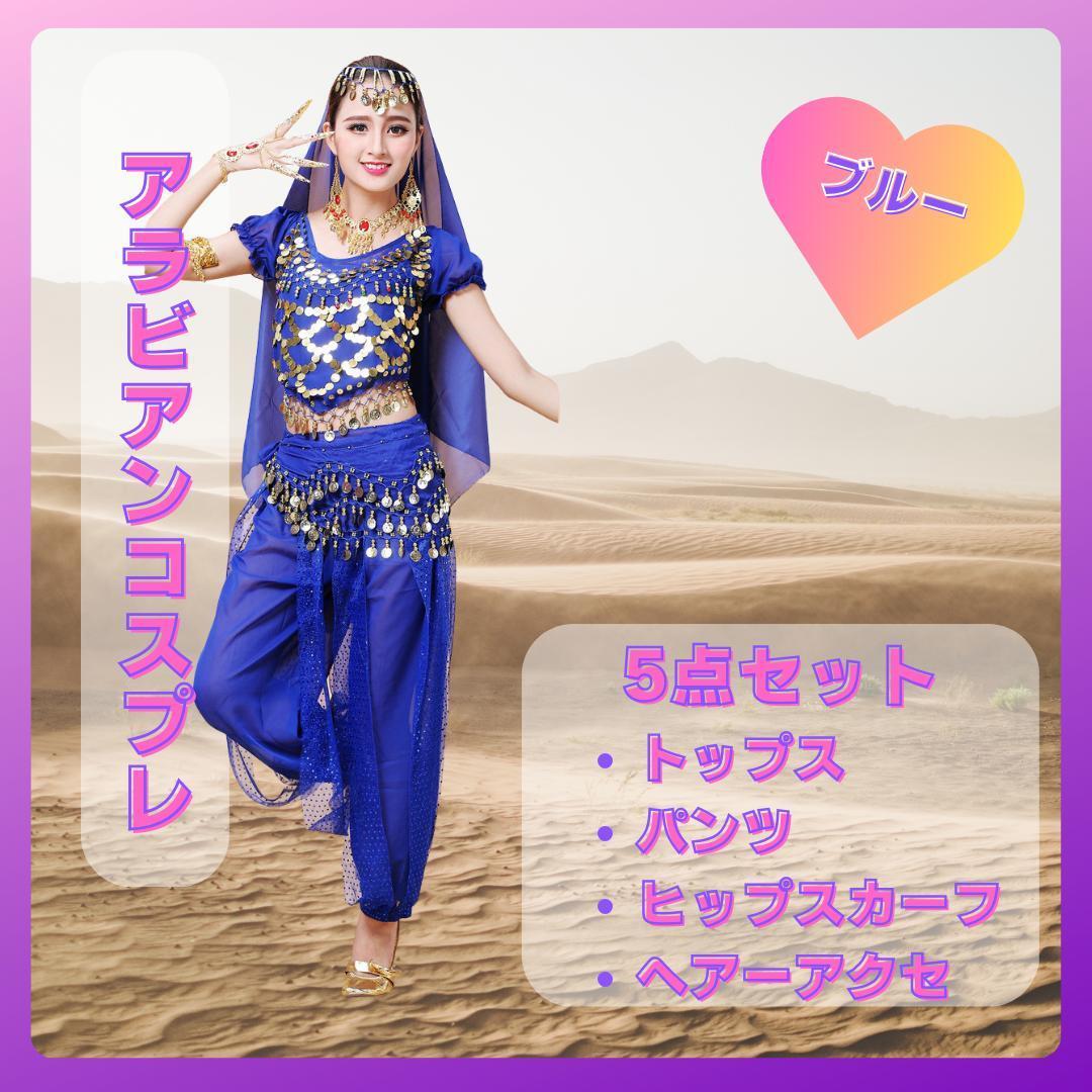 - ベリーダンス コスプレ アラビアン ハロウィン1185 ブルー5点セット ステージ衣装 仮装 フリーサイズ セクシー
