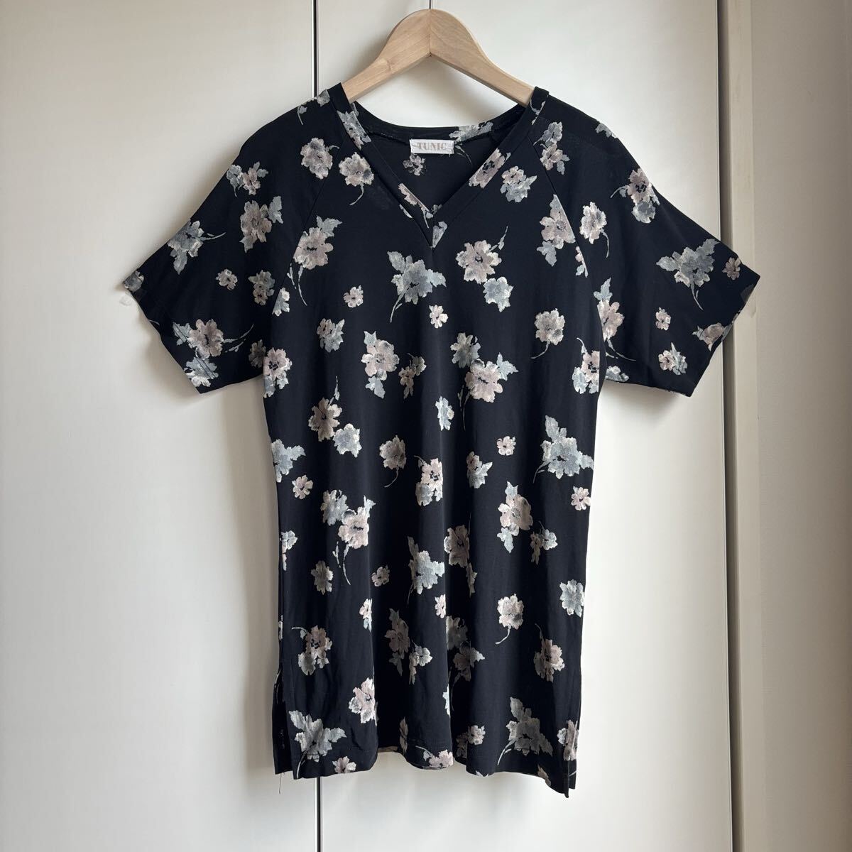 - TUNIC 鴨居羊子 チュニック 半袖カットソー シャツ 花柄 綿 コットン 総柄 伸縮性あり ジャージー 日本製 フリーサイズ