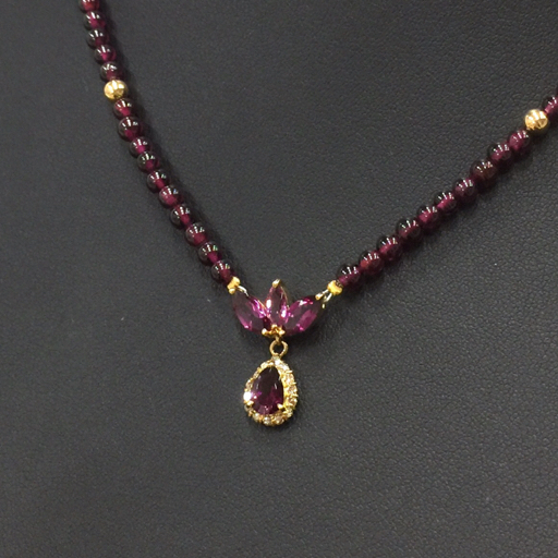 > ガーネット 70ct / ダイヤ 0.2ct ネックレス 金具 K18 全長約44.5cm 重量約15g レディース アクセサリー