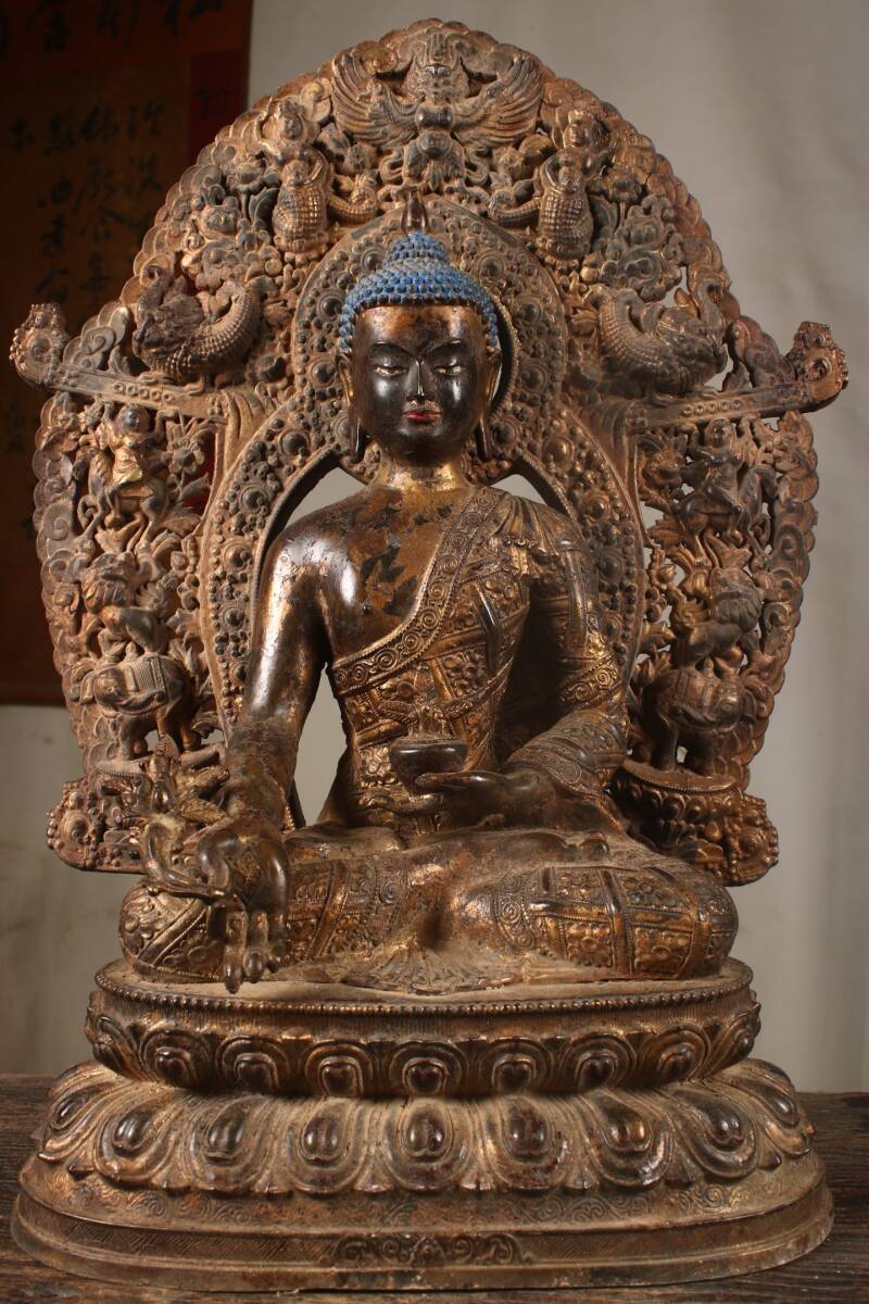 - 明代風 古銅泥金 銅器 薬師佛 佛像 仏像 宗教密教 居家供奉 置物 仏教古美術 極細工 骨董 旧家蔵出し 唐物 中国古玩 華夏品 古美術品