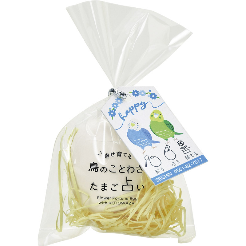 〇注意事項・送料800円が販売価格に含まれています・お取り寄せ商品です。弊社にて手配後、メーカー・卸業者からの直送になります。・まれにメーカー欠品、出荷遅延等が発生致します。問題発生時は別途メールにてご連絡致します。・配送方法の指定、日時指定、置き配、ギフト対応、他商品との同梱配送などは対応できません。・まとめ買いや複数購入の場合は通常より発送に時間が掛かる場合がございます・複数個口の場合、2階以上への搬入ができない場合があります。(その場合は1階での受け渡しとなります)・大型連休、お盆、年末年始などは発送をお休みさせていただく場合がございます・メーカー都合により、パッケージは予告なく変更される場合がございます・梱包用のダンボールはリサイクル品を使用させていただきます。・注文に関するご連絡(注文確定通知・発送通知など)はメールでご案内させていただきます※商品ページの内容について、少しでもご不明な点などがございましたら購入前に一度ご連絡ください〇商品説明あらゆるギフトシーンにおすすめです!陶器で出来たうずらのたまごサイズのたまごの中に花の種付きの鳥のことわざ占いが入っています。たまごを割って占いを取り出し、運勢を見たあとは占いを土に埋めると花の栽培を楽しめます。〇商品仕様●内容:たまご×1、うらない×1規格●裸商品(29×78×45mm) 8g●材質:陶器●加工地:日本(出典:株式会社 八大)