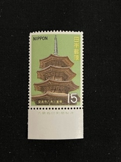 - 切手 単片 【第1次国宝シリーズ】室町時代 八角三重塔 銘板付き