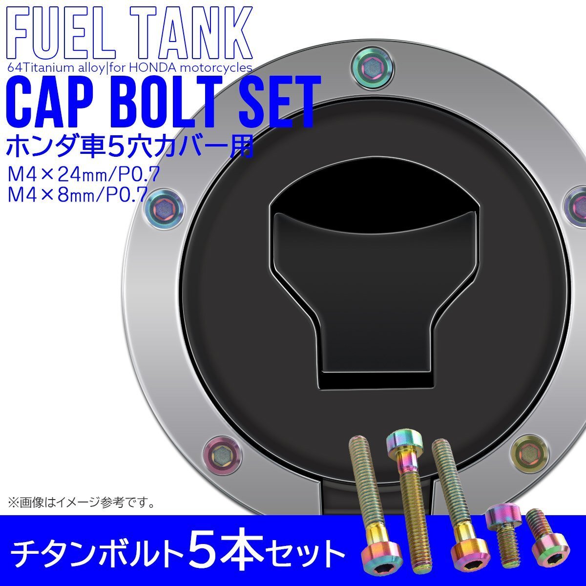 > ホンダ 5穴用 タンクキャップボルト チタンボルト 燃料タンクカバーボルト 5本セット レインボー 面取り仕上げ JA1858