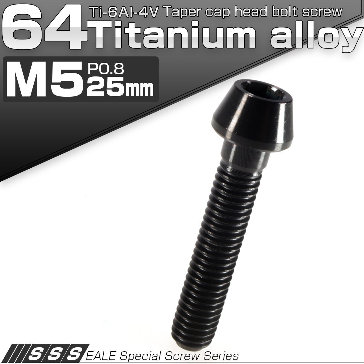 - チタンボルト M5×25mm P0.8 キャップボルト ブラック 六角穴付きボルト テーパー JA360