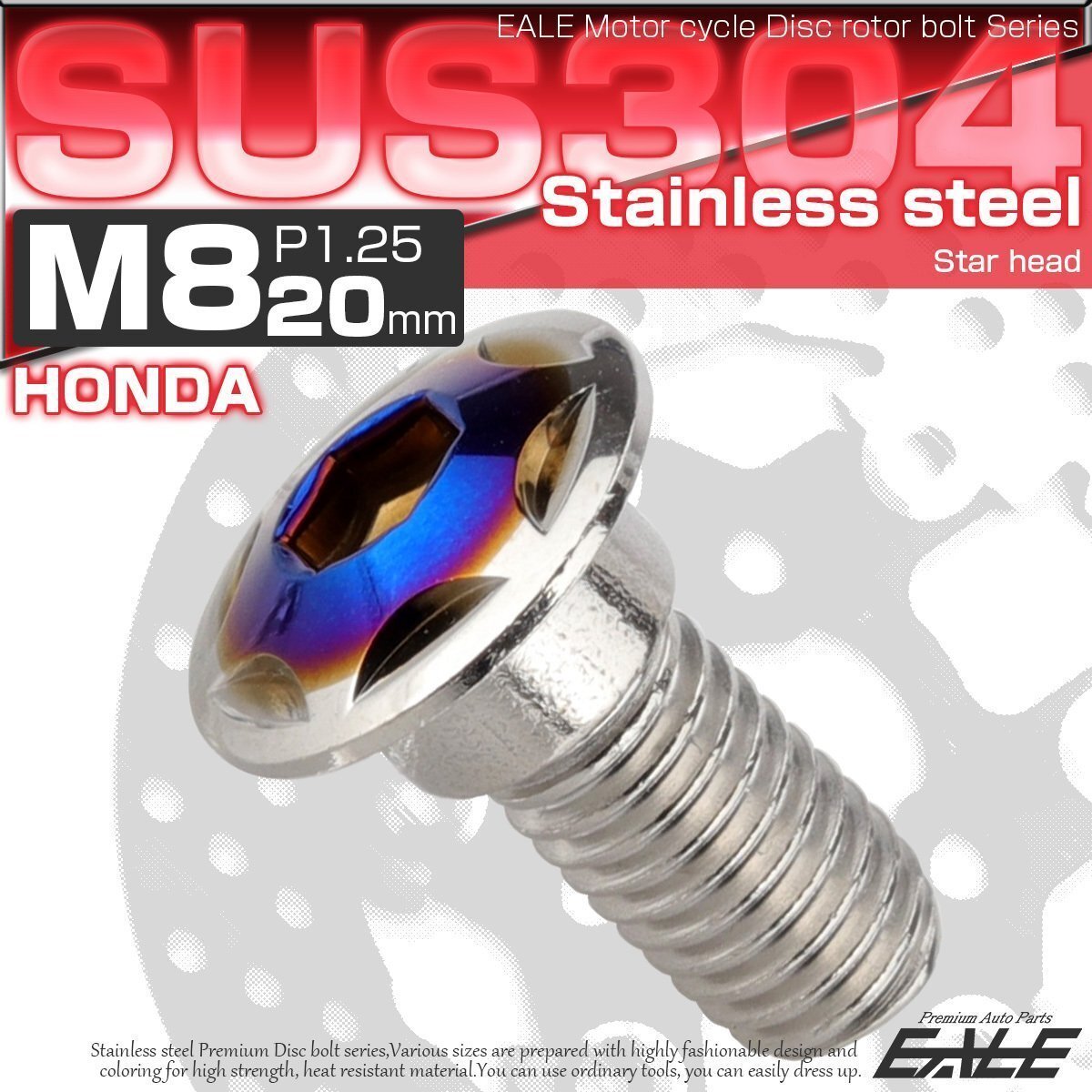 > ホンダ用 ディスク ボルト M8×20mm P=1.25 ブレーキ ローター SUS304 ステンレス スターヘッド シルバー/ブルー TD0310