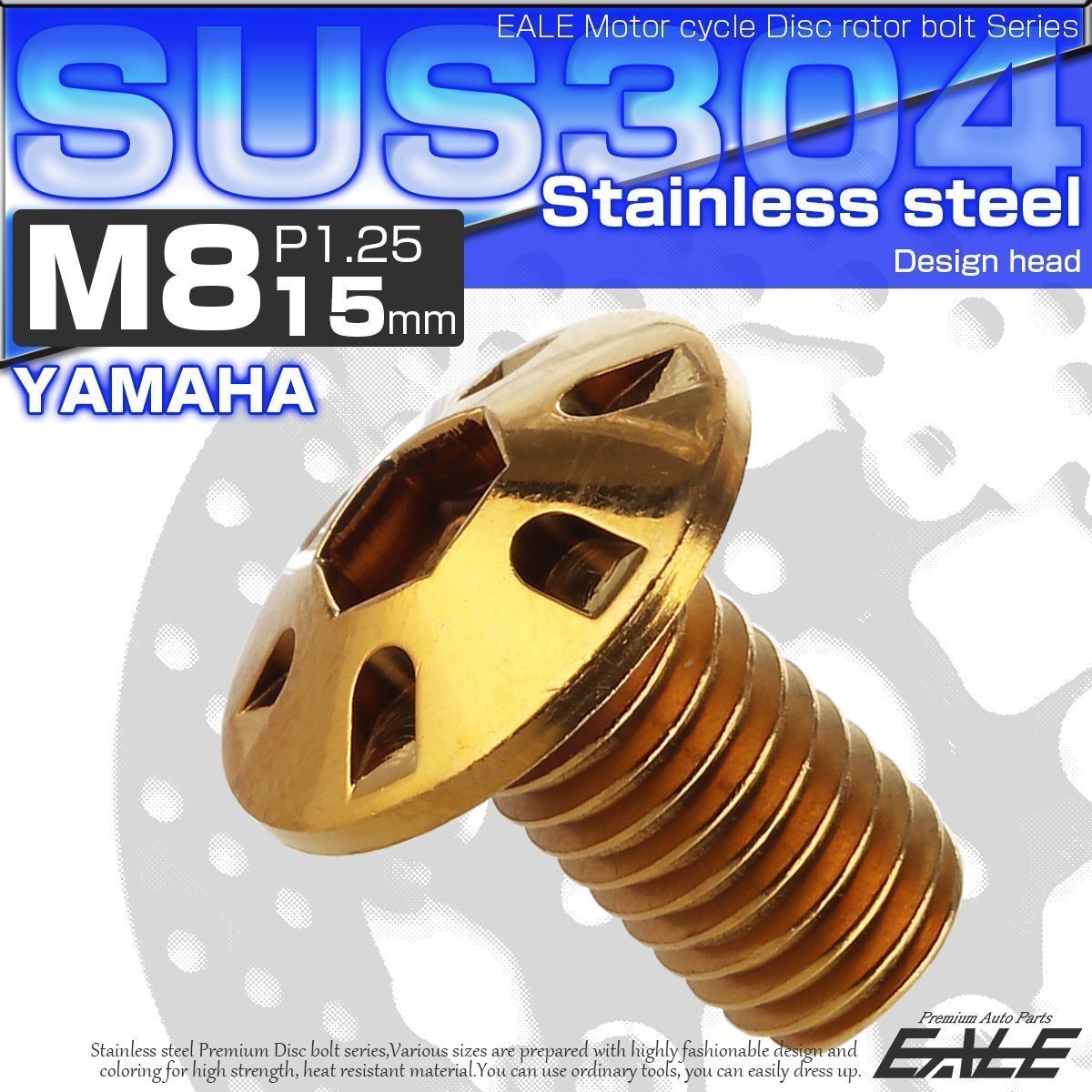 - ヤマハ用 ブレーキ ディスク ローター ボルト M8×15mm P=1.25 SUS304 ステンレス デザインボルト ゴールド TD0129