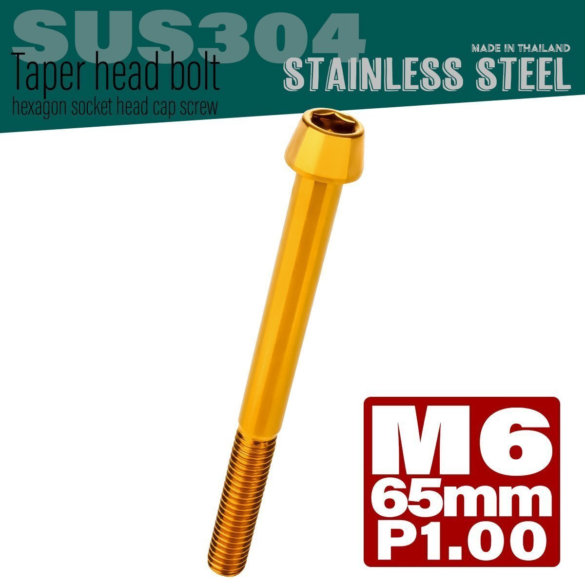 > M6×65mm P1.00 ゴールド テーパーヘッド キャップボルト SUS304 ステンレス 六角穴付きボルト TB0082