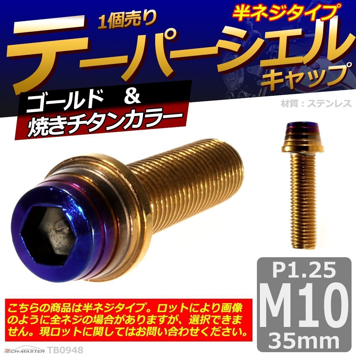 > M10×35mm P1.25 テーパーシェル キャップボルト ステンレス 車/バイク/自転車 ドレスアップ ゴールド&焼きチタンカラー 1個 TB0948