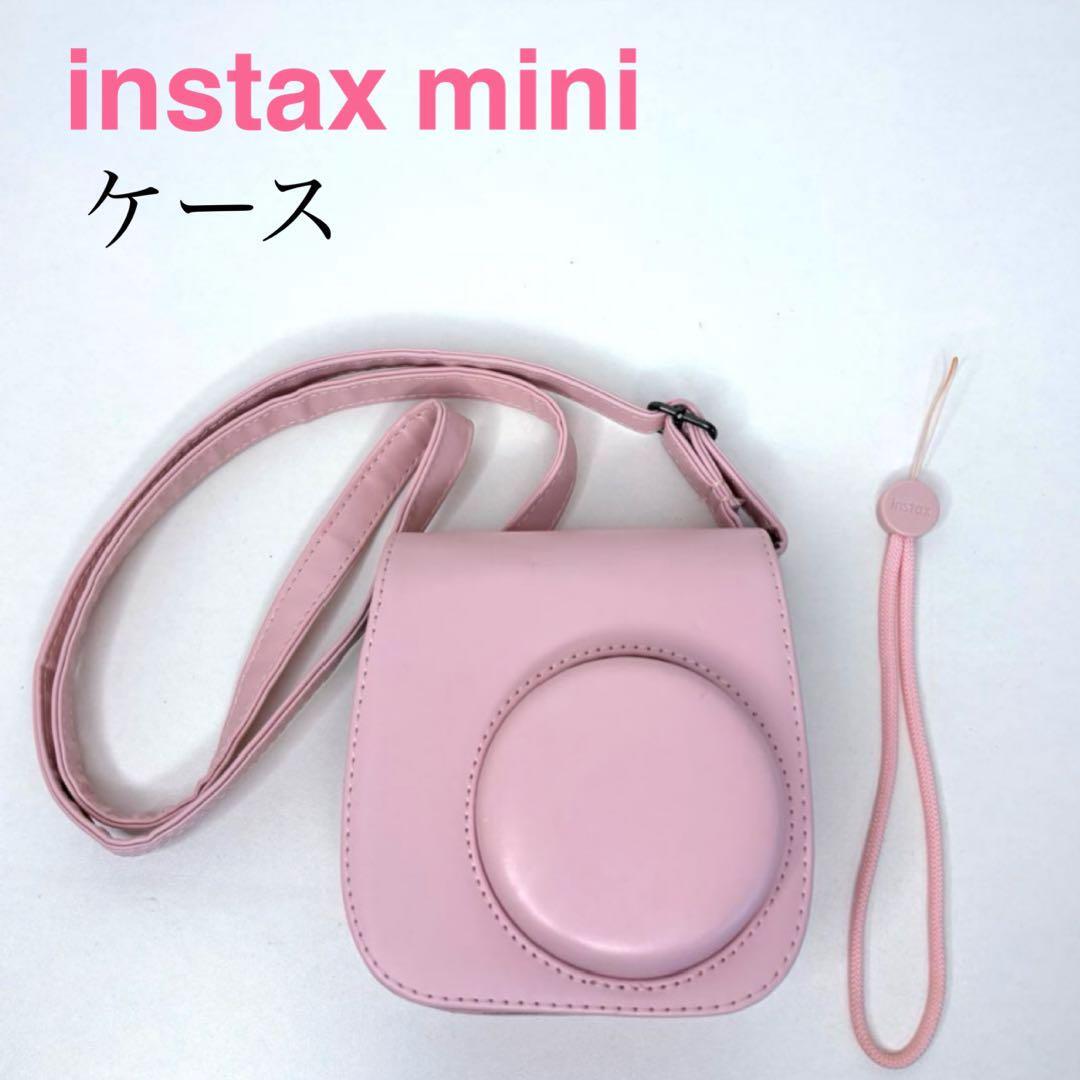 - ミニインスタントカメラバッグ チェキケース ピンク ストラップ付