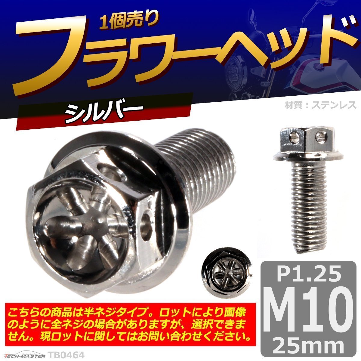 - M10×25mm P1.25 フラワーヘッド 六角ボルト ステンレス 車/バイク/自転車 ドレスアップ シルバー 1個 TB0464
