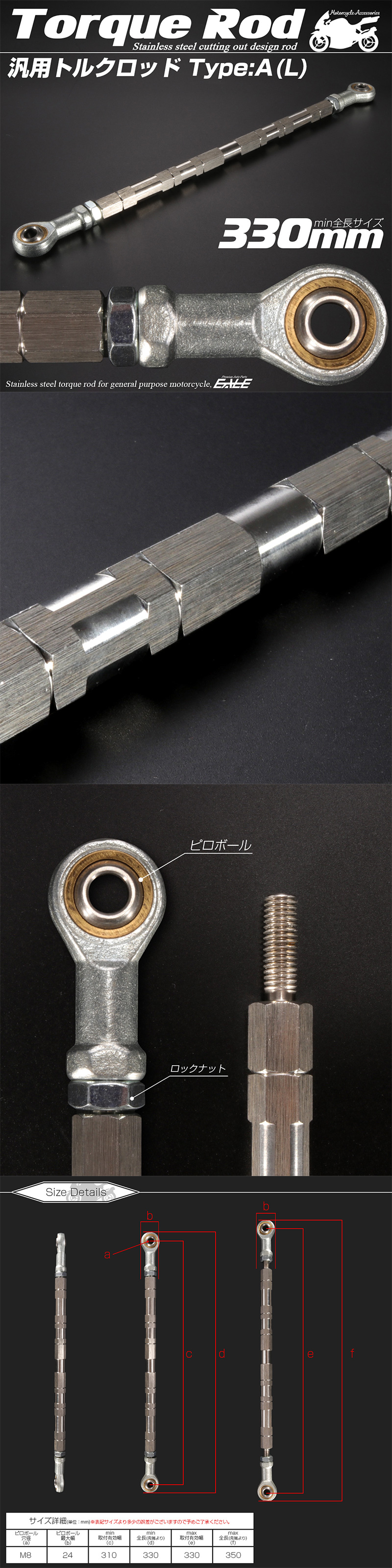 > 汎用 ブレーキ トルクロッド Lサイズ 取付幅310-330mm カラー シルバー タイプA ターンバックル ピロボール TH0066