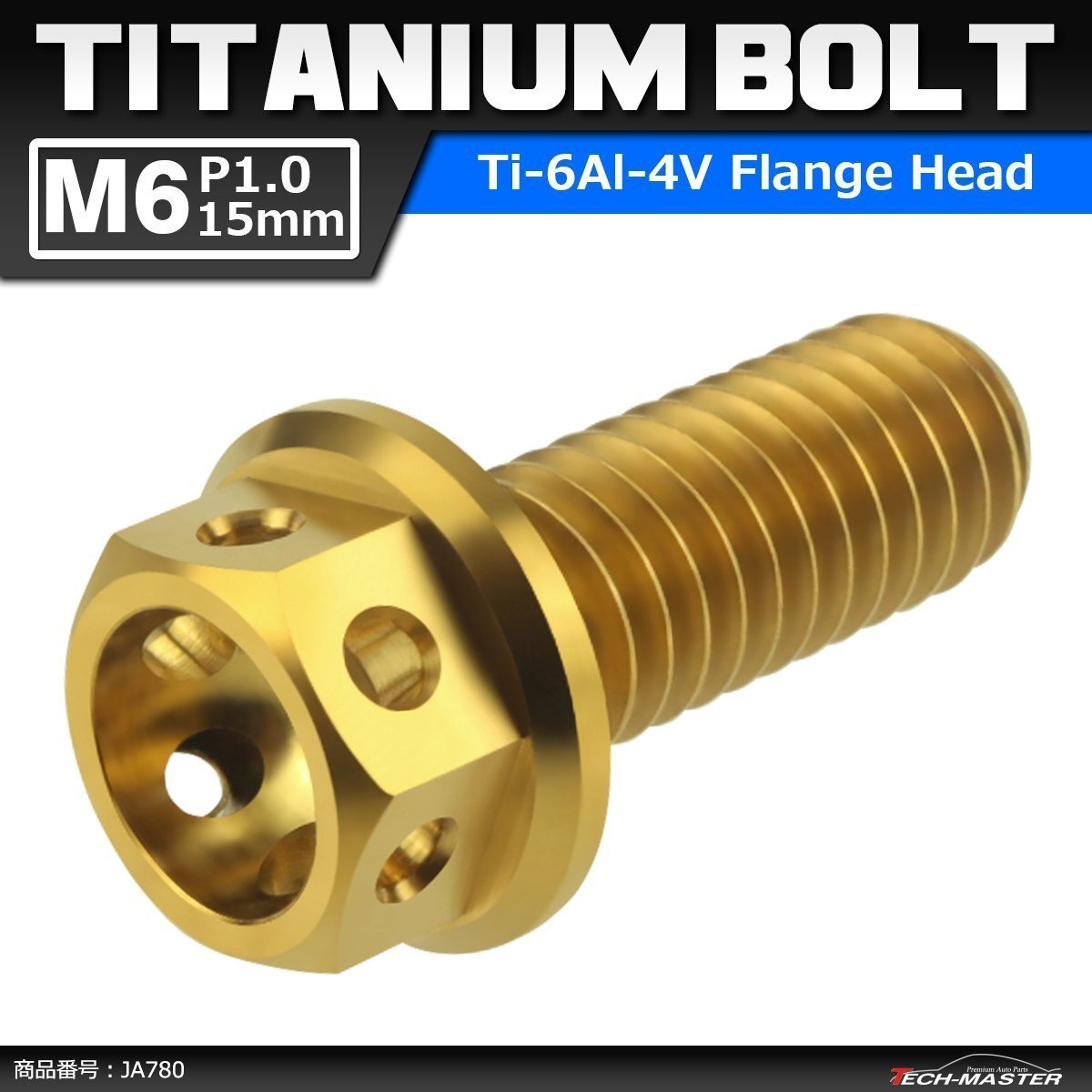 > M6×15mm P1.0 64チタン合金 ホールヘッド 六角ボルト フランジ付き ゴールドカラー 車/バイク 1個 JA780