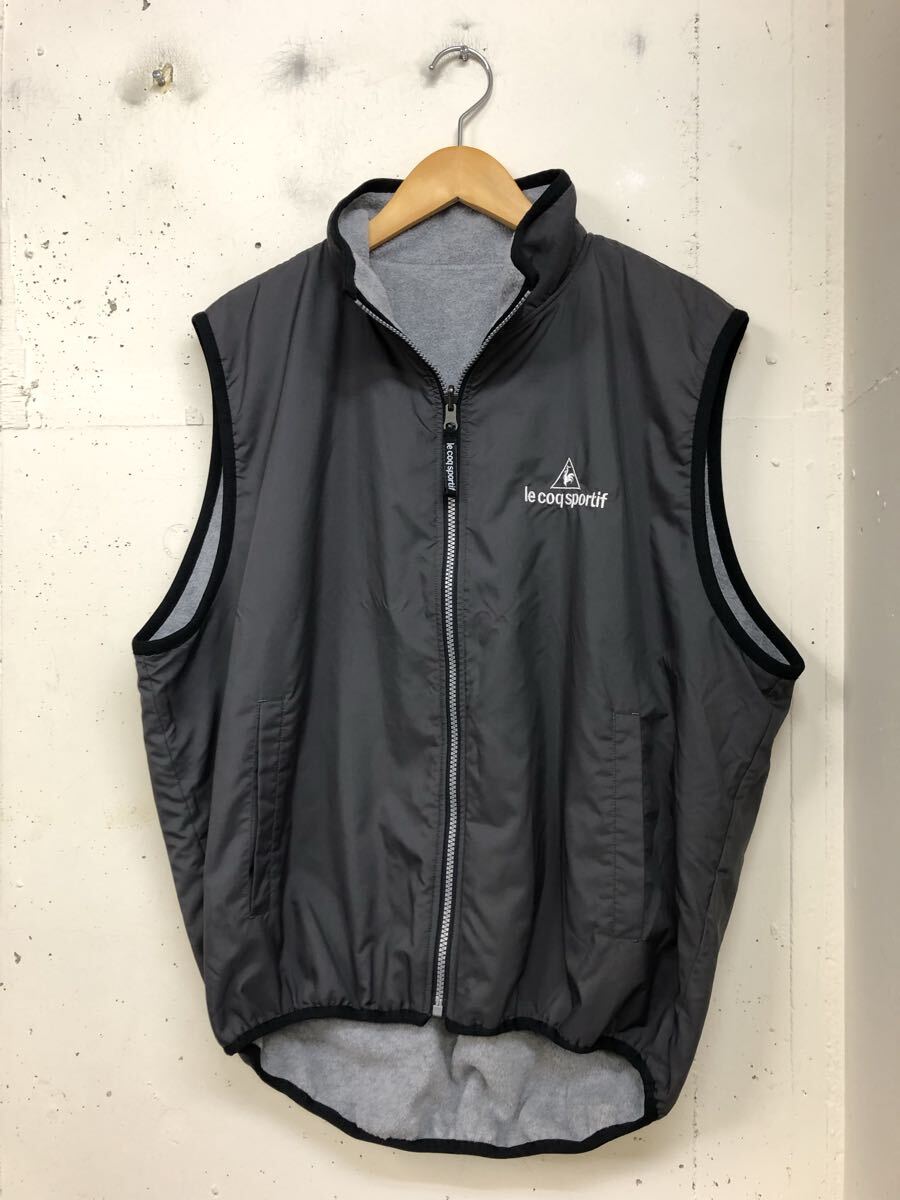 - 美品 le coq sportif GOLF ルコック ナイロン&フリース リバーシブル ベスト グレー メンズM ゴルフウェア
