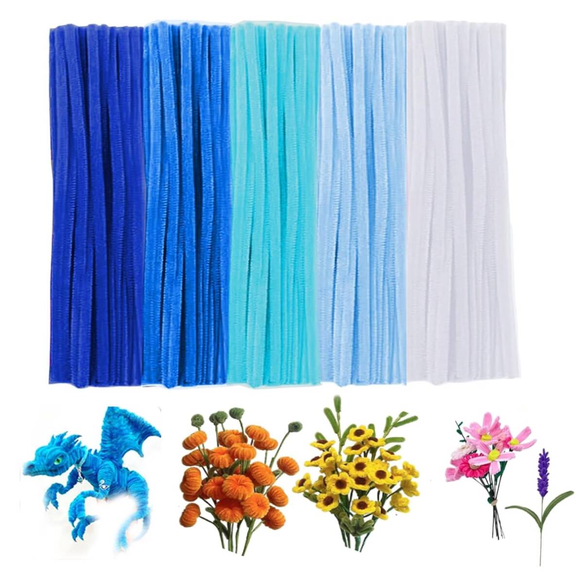 - ブルー系色 手芸モール 花セット約100本 人工花茎 花束 ブーケ 手作りキット DIY カラーモール クラフトモール 工作モール 造花