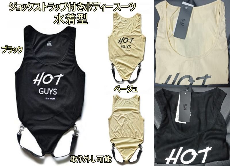 > 【スポーツの日特価】ケツワレ一体型のハイレグボディスーツ!! ジョックストラップ付き水着型ボディースーツ(XL)出品はベージュです