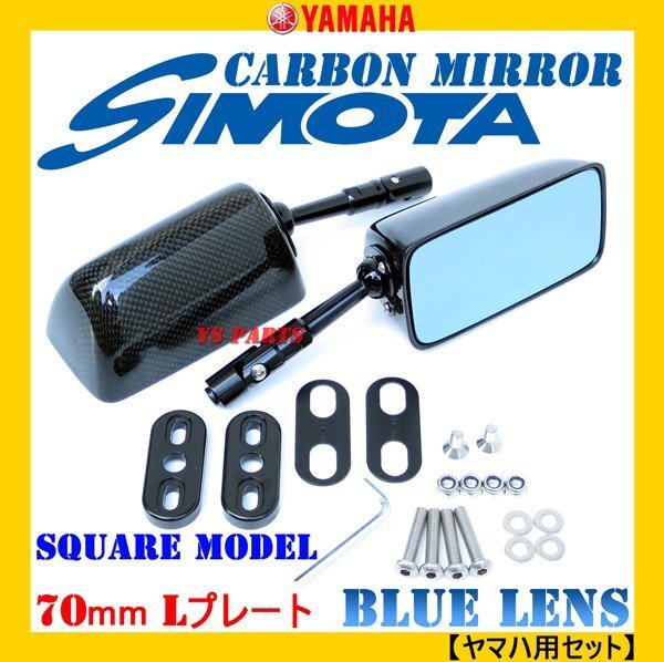 - 【超軽量リアルカーボン】カーボンミラーL角型/ブルーレンズ/70mmショートステム ヤマハ用T-MAX500/TMAX500['01-'02]等に