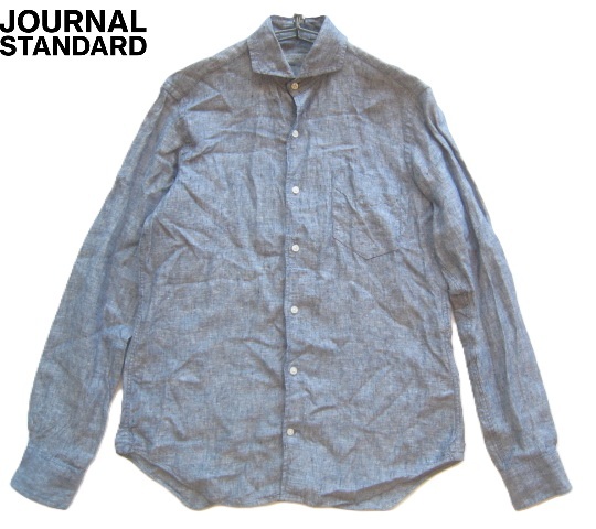 > 美品!!ジャーナルスタンダード JOURNAL STANDARD*麻100% 胸ポケット付き リネンワイドスプレッドカラーシャツ M Simplicite Plus