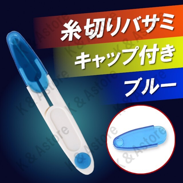 > 糸切りバサミ はさみ ハサミ 鋏 刺繍 縫製 手芸 パッチワーク キャップ付き 保護カバー付き 青 ブルー ハンドメイド 裁縫道具