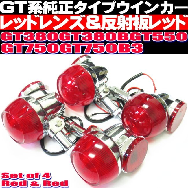 > 〇 GT380 純正 タイプ ウインカー 4個セット レッドレンズ 反射板レッド 当時物風 アルミ製 GT550 GT750 その他 CB250T CB400T ホーク 流用