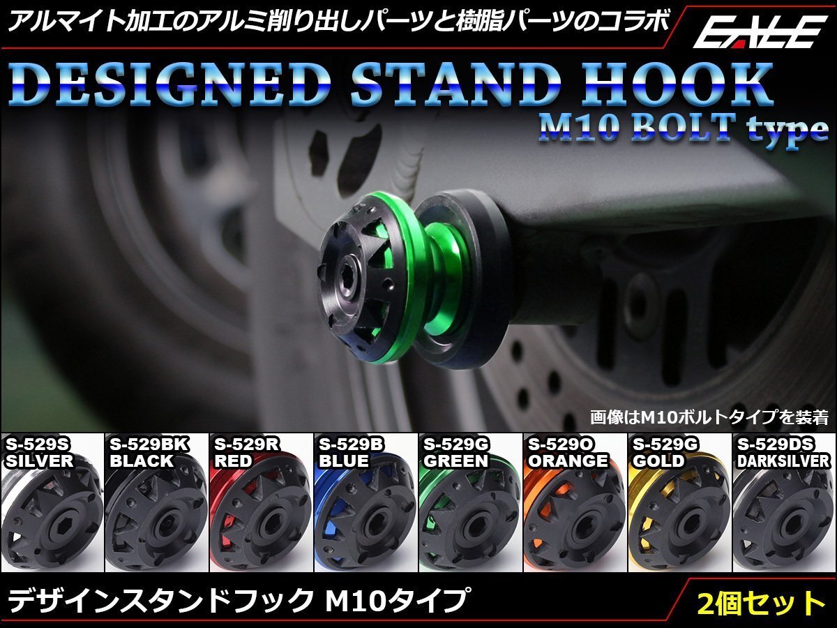 > アルミ削り出し&樹脂 M10 スタンド フック レーシング/メンテナンススタンド用に スイングアーム取付 2個セット ブルー S-529-B