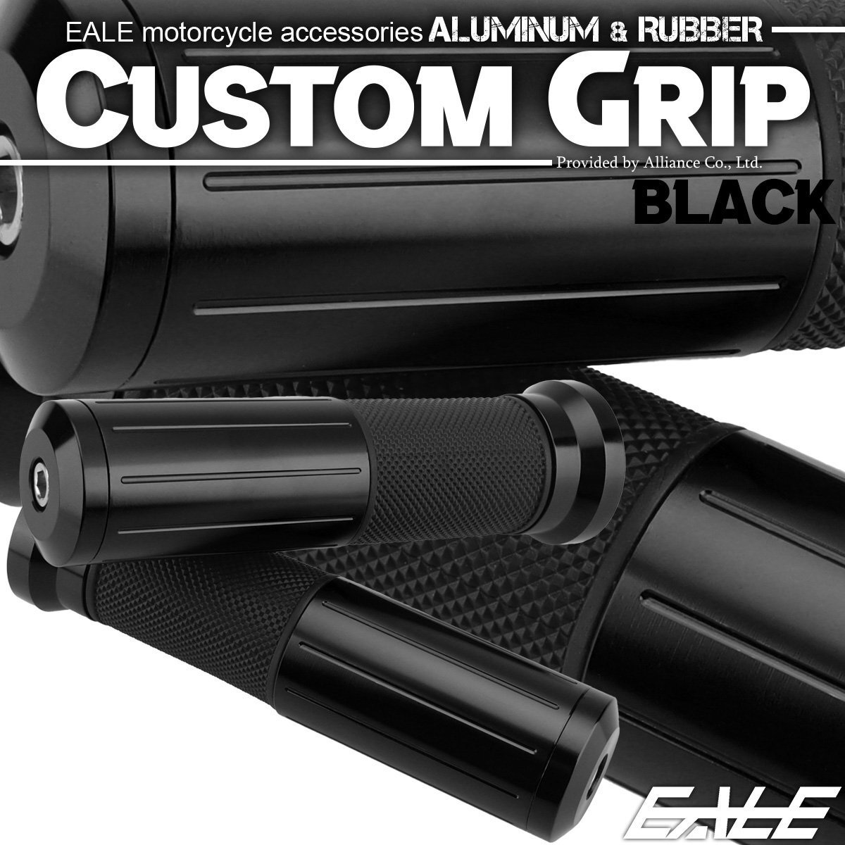 - バイク グリップ ハンドル アルミ ラバー バーエンド付き 22.2mm用 ブラック 左右セット カスタム ドレスアップ S-578-BK