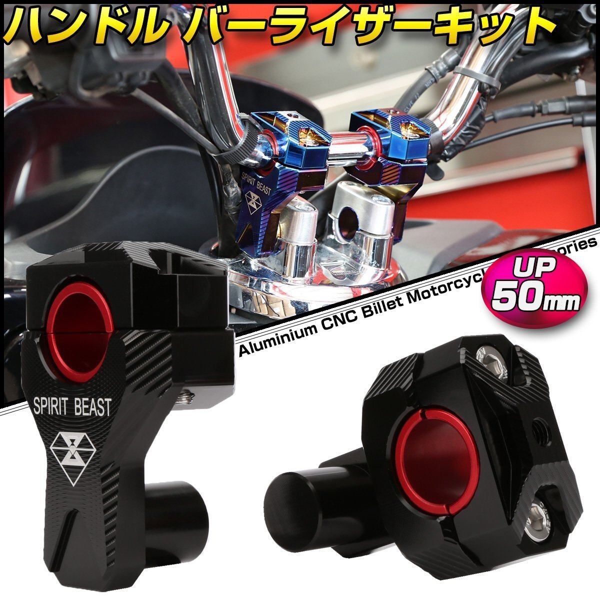 - 汎用 50mm ハンドルバー ライザー キット ブラック アップハンドル クランプ径 22.2mm アルミ削り出し S-707-BK