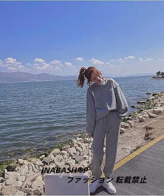 - 春秋 パーカー 2点セット ジャージアップ レディース 韓風 スウェット スポーツパンツ 上下 カジュアル ルームウェアゆったり 大きいサイズ