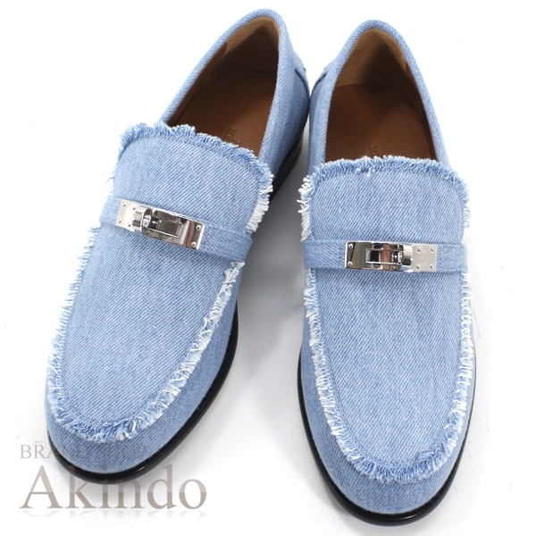 - 【新品】エルメス HERMES ローファー モカシン デスタン #37 サイズ37 デニム 青 ブルー ケリー金具 シューズ 靴 レディース
