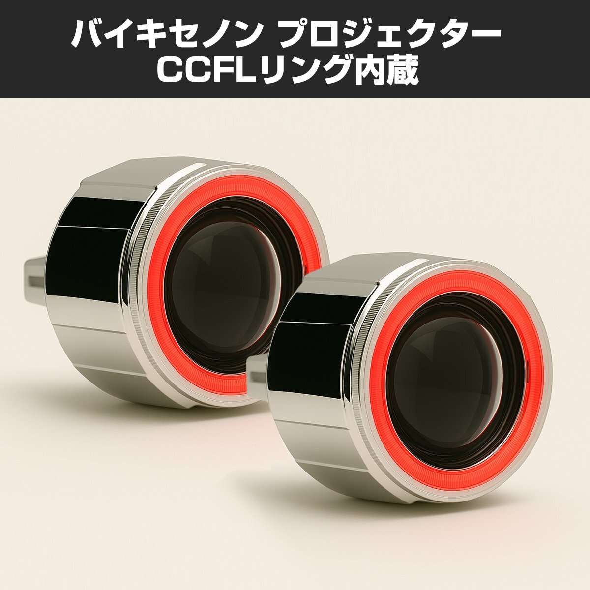 - 小型 ヘッドライト 埋込型 プロジェクター HID ホワイト + CCFLリング レッド PZ104-R