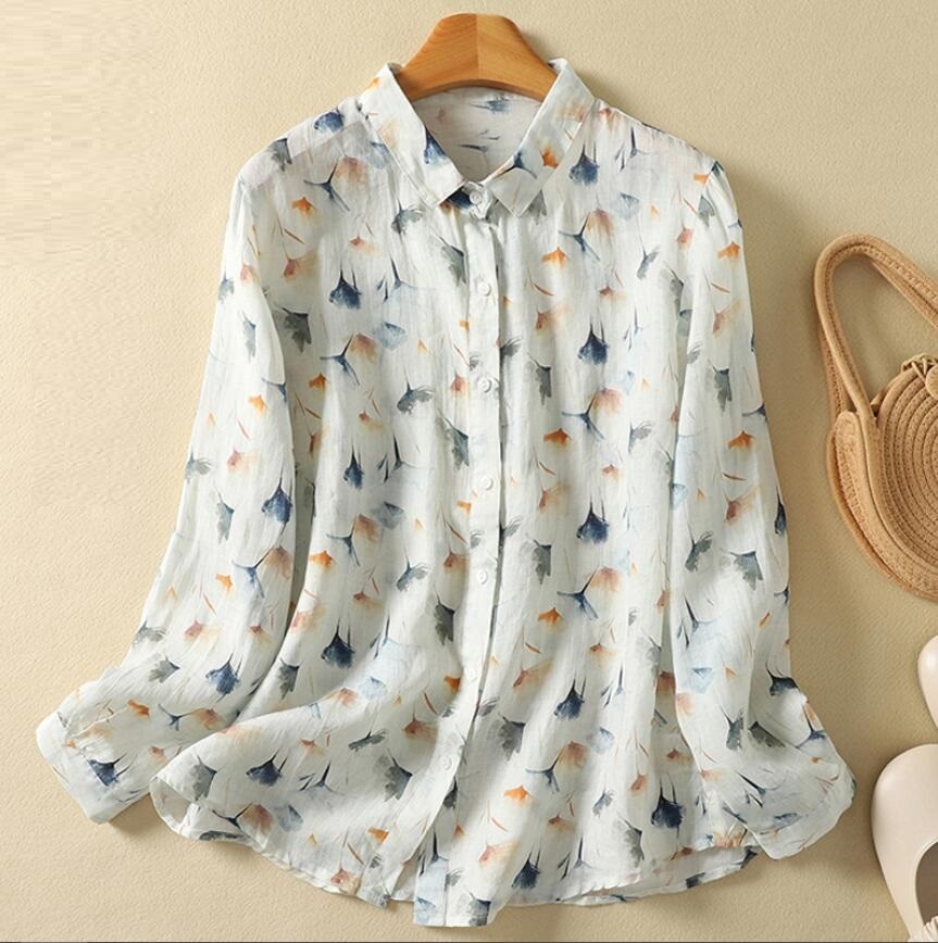 - 新入荷* シャツ レディース ブラウス シャツブラウス 長袖 トップス 花柄 前開き 重ね着 大人 カジュアル 大きいサイズ かわいい* 杏