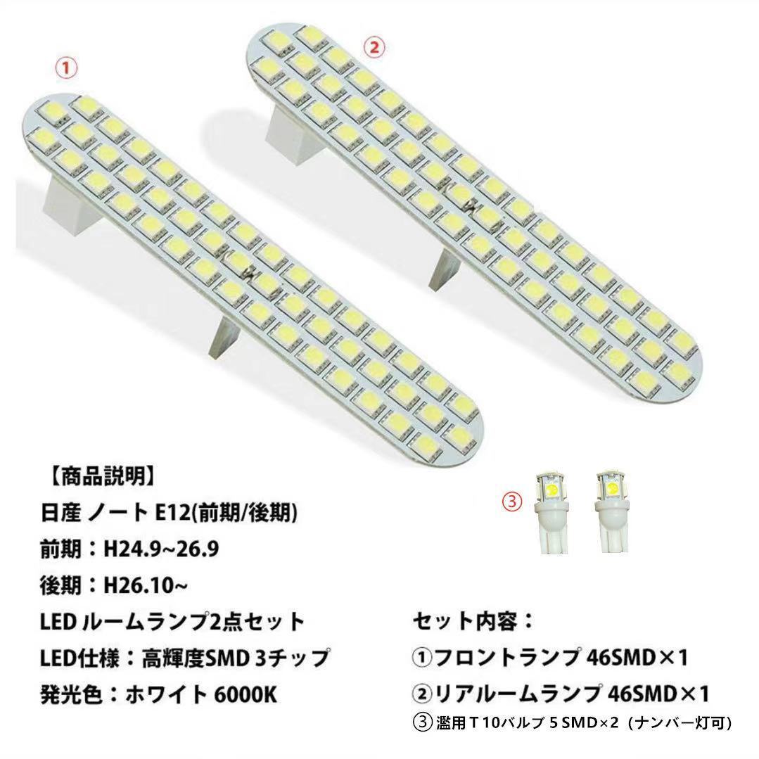 > LEDルームランプ 室内灯 NISSAN 日産 ニッサン ノート 前期 後期 NISSAN NOTE E12 車内 ルーム球 白 ホワイト 専用