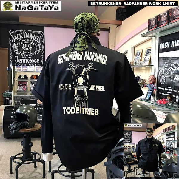 > ベェトォンナ ラドファ モーターサイクルシャツ ブラック 黒 Lサイズ BIKERワークシャツ バイカーギャング BETRUNKENER RADFAHRER