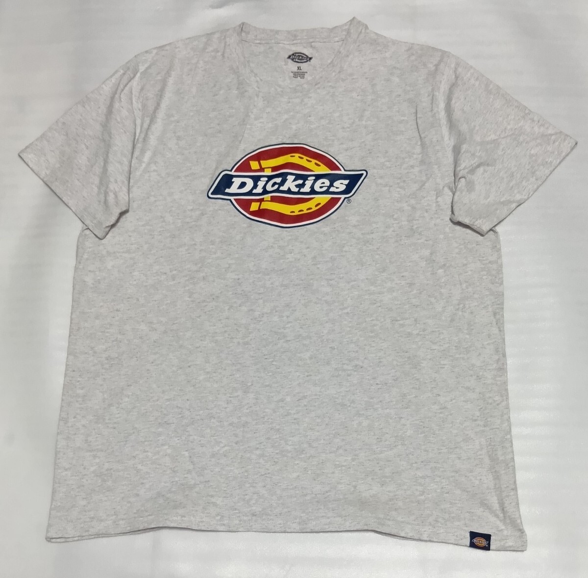 > ☆Dickies サイズXL 半袖TシャツGLAYグレイBIGプリントLL黒タブTEEワーク カジュアル スタイル ファッション ブランド ディッキーズ ティー