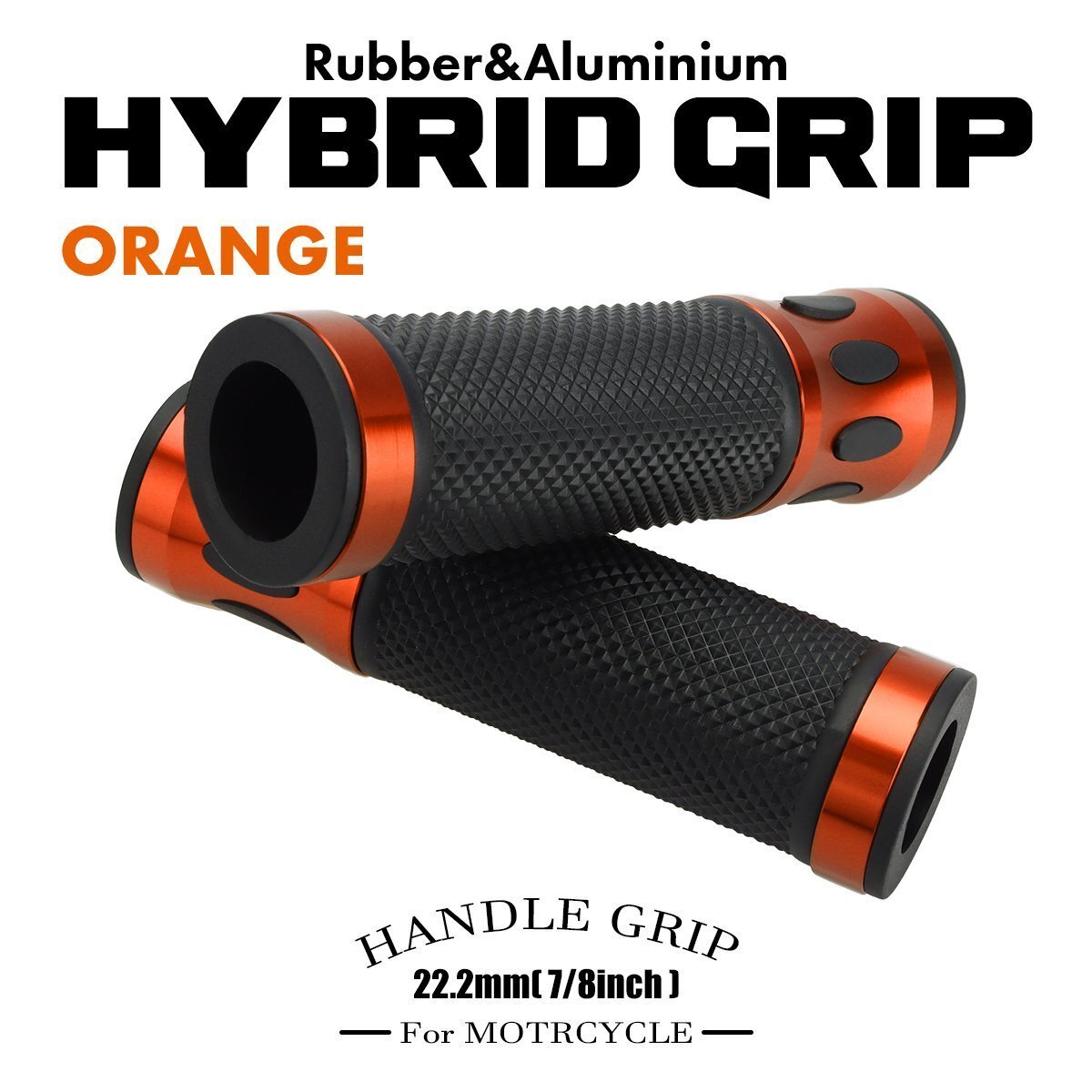 > バイク グリップ ラバー×アルミ削り出し ハイブリッドデザイン 左右セット 貫通タイプ 22.2mmハンドル用 オレンジ SZ573-O